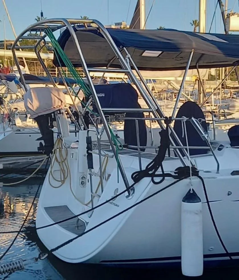 El WeldArch se compone de 2 arcos (fabricados con tubo Ø43mm), uno fijado al espejo de popa y otro a la cubierta mediante pletinas de Ø120mm, las cuales tienen agujeros por donde pueden pasar los cables. Los 2 arcos se unen entre si mediante tubos de Ø30mm.